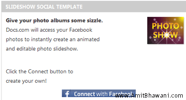 • First you need to visit Slideshow. As soon as you log on to this page, it will prompt you to login with your facebook account which can be done easily by clicking the Connect the facebook button.