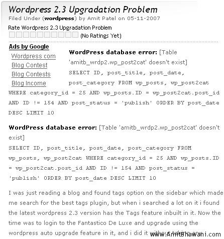 WordPress 2.3 Upgradation Problem