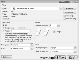 1. Open the file in the application that it was created in. 2. Choose File > Print (note that with more recent versions of Office programs, you click the Office button and then choose Print). 3. In the resulting Print dialog box (see Figure 3-12), select what to print; these options might vary but generally […]