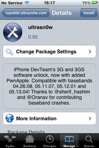 The key to this unlock is that you are going to have Cydia application on your device after the Jailbreakme.com Jailbreak following which you need to unlock it by adding its source. Compatible with Apple iPhone 4 baseband 01.59.00 and iPhone 3G / 3GS basebands 04.26.08, 05.11.07, 05.12.14 and 05.13.04.