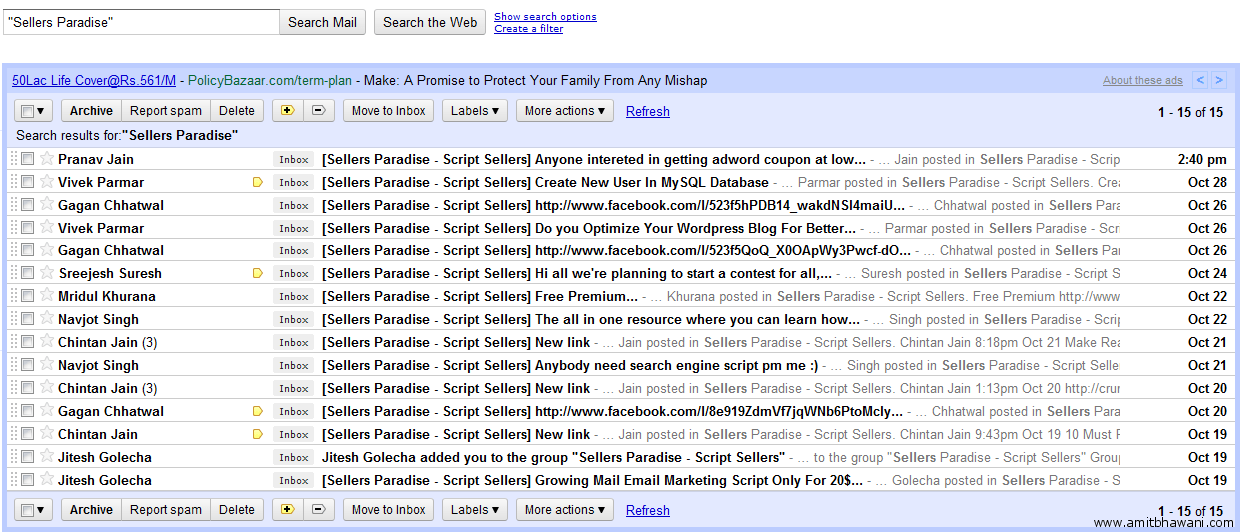 Answer : Its good that you are using the groups feature of facebook for your business and enjoying what all they offer. But the bad part is that facebook allows anyone to make you a member of their groups without any confirmation and then all their group updates are sent to you via email. I will be showing you a example of one such group i personally didn’t join in but still was been sent huge email notifications.